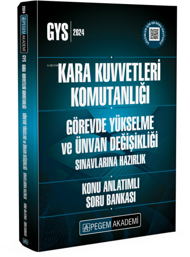 PEGEM Akademi Görevde Yükselme Sınavlarına Hazırlık Yayınlarımız, alanında uzman yazar komisyonumuz tarafından, en son yayımlanan sınav ilanındaki konular kapsamında hazırlanmıştır. Kitaplarımız, yayımlandığı tarihe kadar mevcut olan tüm güncellemeleri kapsamaktadır. Kara Kuvvetleri Komutanlığı Görevde Yükselme ve Ünvan Değişikliği Sınavlarına Hazırlık Konu Anlatımlı Soru Bankası yayınımız, sizlere güncel bir yayın iletme gayesi ile özenle hazırlanmıştır. Konularda teorik çerçeve net bir şekilde çizilmiş ve konu sonlarında çözümlü testler ya da cevaplı tarama testlerine yer verilmiştir