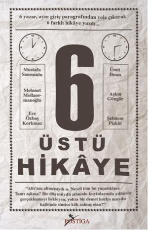 6 Üstü Hikâye seçkisi altı yazarın aynı giriş paragrafından yola çıkarak kaleme aldığı altı farklı öyküden oluşuyor. Edebiyatın farklı türlerinde kalem oynatan altı yazar hikâyelerine aynı giriş paragrafıyla başlayıp sözcüklerin dimağlarında yarattığı farklı esinlerle kendi hikâyelerini kurguladı.