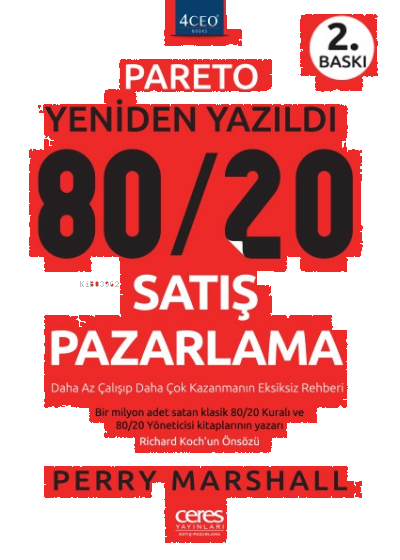 Şimdi Perry'nin size göstereceği gibi, eğer Kuralı gerçekten onun açıklayacağı şekilde anlar ve kullanırsanız sizin ve firmanızın önünde herhangi bir engel kalmayacaktır. Bu kitabı sevmenin üçüncü nedeni, açık uçlu ve deneysel olması. Zihninizi açmanızı ve asla yapmadığınız şeyleri yapmanızı ve zaten yaptığınız şeyi ise tamamen yeni boyutlarda yapmanın yollarını düşünmenizi sağlayacak. Yani bu kadar benim için yeterli. Şimdi kitabı okuyarak devam edin. Perry'nin coşkusu bulaşıcıdır ve umarım ondan büyük bir doz alırsınız! Emin olduğum tek şey var, bu kitabı açık bir zihinle okuyup beyninizi kitaptaki en güçlü noktaları düşünmek için birazcık kullanırsanız, işinizi ve hayatınızı gerçekten değiştirebilirsiniz. —Richard Koch Cape Town Richard'ın yeni kitabı The 80/20 Manager yakın zamanda yayımlandı. Yöneticilerin iş hayatlarını ve elde ettikleri sonuçları olağanüstü çabaya gerek kalmadan dönüştürebilecekleri 10 yolu anlatıyor.