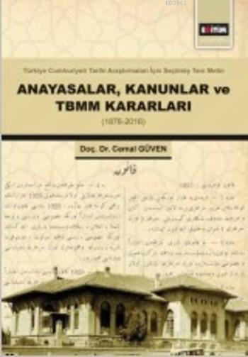 Anayasalar, Kanunlar ve TBMM Kararları tarih araştırmalarında kullanılan ana kaynaklardandır. Bu eser Türkiye Cumhuriyeti Tarihi Araştırmaları için seçilmiş tam metin Anayasalar, Kanunlar ve TBMM Kararları ile yine bu sınırlılık içerisinde seçilen bazı hukukî metinlerden oluşmaktadır. Elbette bütünü değil ama önemli bir kısmını içeren, bunların kronolojik olarak bir arada ve bu kapsamda alanında tek olarak istifadeye sunulan kaynak bir eserdir.