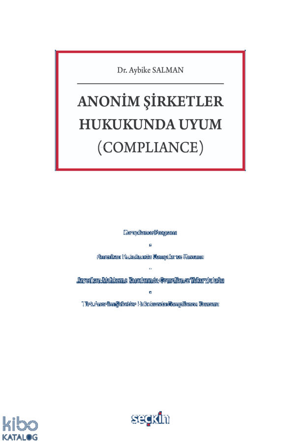 Bu doğrultuda kitapta; ABD hukukunda compliance kavramının gelişim süreci, mahkeme kararlarında compliance yükümlülüğü ve özel hukuk alanındaki düzenlemeler ele alınmıştır. Türk anonim şirketler hukuku bağlamında ise henüz açık bir şekilde yönetim kurulunun compliance yükümlülüğünden bahsedilmemektedir. Kitapta; TTK, SerPK ve ilgili diğer düzenlemelerde anonim şirketlerin hukuka uygun davranılmasını güvence altına almaya yarayacak mekanizmalar, bir diğer ifadeyle compliance yükümlülüğünün yansımaları incelenmiştir.