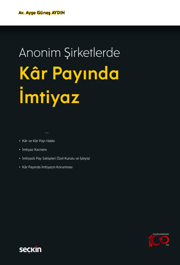 6102 sayılı Türk Ticaret Kanunu'na göre, anonim şirketler, yasal düzenlemelere aykırı olmamak kaydıyla her çeşit ekonomik amaç ve konu için kurulabilecektir. Dolayısıyla anonim şirketlerin nihai amacının kazanç elde etmek ve pay sahiplerinin amacının da kâr elde etmek olduğunu söylemek yerinde olacaktır.Genel kabul gören kurala göre pay sahipleri, anonim şirketin elde ettiği kazançtan pay sahiplikleri oranında yararlanacaklarsa da Türk Ticaret Kanunu'nda yer alan md.478 ile kâr payına imtiyaz tanınmasının önü açılmıştır ve bazı pay sahiplerine kâr payından yararlanmada üstün hak, diğer bir ifadeyle imtiyaz tanınabilecektir. Buna karşın, Türk Ticaret Kanunu'nda kâr payında imtiyaz konusu ne yazık ki son derece kısıtlı düzenlenmiştir ve konunun uygulamasına ilişkin öğretide birçok noktada fikir ayrılıkları mevcuttur. Bu nedenle, bu kitapta, konunun somut bir şekilde ortaya konulabilmesi amacıyla öğretideki farklı görüşlere ve aynı zamanda Yargıtay kararlarına yer verilmiştir.Kitapta genel hatlarıyla halka kapalı anonim şirketler ele alınmış olup, halka açık anonim şirketler açısından yapılan değerlendirmeler konunun esasıyla ilgili olan kısımlarla sınırlandırılmıştır.