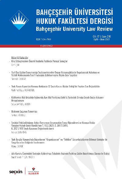 Bahçeşehir Üniversitesi Hukuk Fakültesi Dergisi Cilt: 17 Sayı: 210