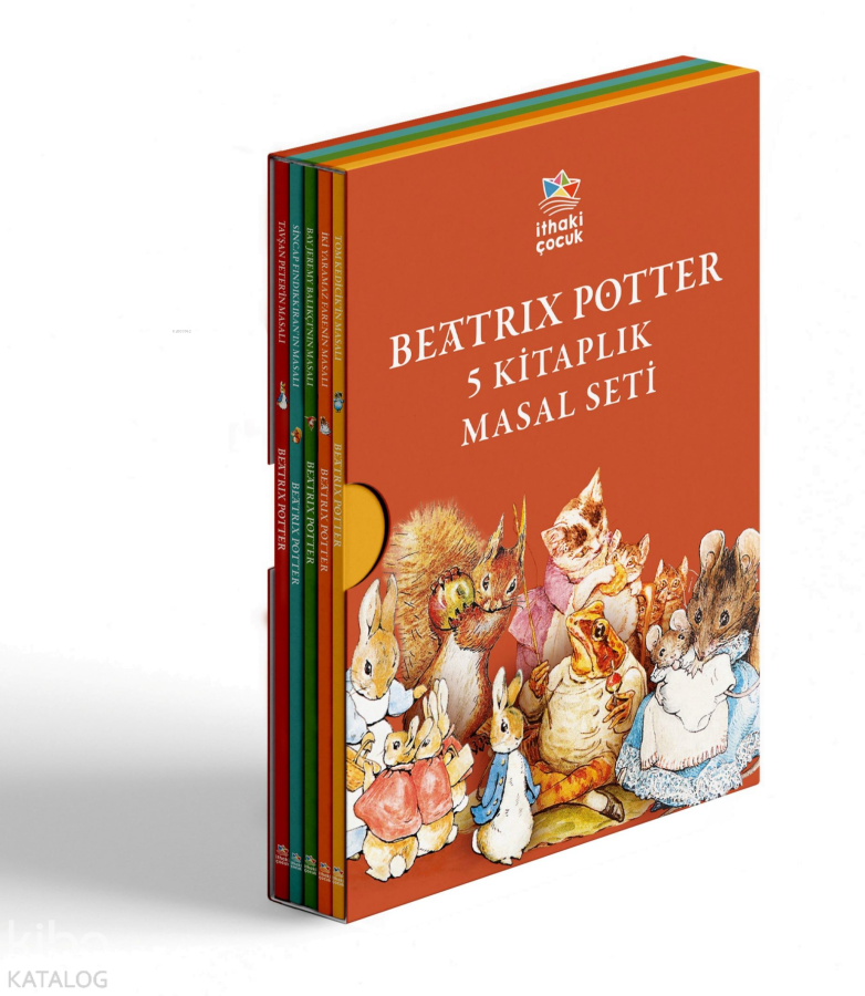 Usta yazar Beatrix Potter'ın yazdığı, her yaştan okur için arkadaşlık, dayanışma, aile, temzlik, doğruluk ve mücadele üzerine 5 masal tek bir kutuda. Özenle hazırlanmış Tavşan Peter'in Masalı, Sincap Fındıkkıran'ın Masalı, Bay Jeremy Balıkçı'nın Masalı, İki Yaramaz Farenin Masalı ve Tom Kedicik'in Masalı kitapları özel set kutusuyla küçük okurlarına ulaşıyor.