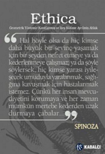 Türkçeye ilk kez Latince özgün metinden çevrilen Batı Felsefesi'nin sarsılmaz klasiği Spinoza'nın Ethica'sı, ele aldığı "Tanrı, İnsan, Zihin, Beden, Akıl, Duygular, Özgürlük" gibi derin felsefi konulara matematiksel bir düşünme yöntemiyle ve mantık kuralları çerçevesinde yanıt arayan, özgün bir üslupla kaleme alınmış, zorlu, çarpıcı ve kışkırtıcı bir eserdir. Tanımlarla, açıklamalarla, önermelerle, önerme sonuçlarıyla, kanıtlamalarla ve notlarla örülü içeriği, insanın bu eseri çoğu felsefe kitabından ayrı bir rafa yerleştirmesini, zihninin en açık ve en berrak anında o raftan alıp okumaya başlamasını, hatta bütün kitabı bitirdikten sonra tekrar başa dönüp bu kez daha ayrıntılı bir bakış açısıyla okumasını gerektirir. Bu yüzden belki de ancak Spinoza'yla karşılıklı oturup konuşarak, tartışarak, dura dura, sindire sindire okununca kavranabilecektir. O vakit görülecektir ki, aslında Ethica'nın o yoğun mantık örgüsü içine gizlediği tek bir hedefi vardır: insan aklını varlığın en üst bilgisine erişecek kıvama getirmek ve bu şekilde insana sonsuz bir mutluluk yaşatmak...