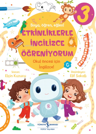 Eleştir, boya, eğlen, İngilizceyi öğren. Robix, Yağmur ve Mert çocukları eğlenceli İngilizce etkinliklere katılmayı davet ediyor! İngilizce öğrenmeye yeni başlayan okul öncesi dönemdeki çocuklar için özel olarak hazırlanan bu kitap, dil gelişimini destekleyen birbirinden eğlenceli etkinlikler sunuyor. Kitapta yer alan labirent, eşleştirme, boyama, bulmaca gibi etkinliklerle çocuklar eğlenerek vakit geçirirken aynı zamanda dil becerilerini geliştirecek ve İngilizce sözcüklerle cümleleri kalıcı şekilde öğrenecekler.
