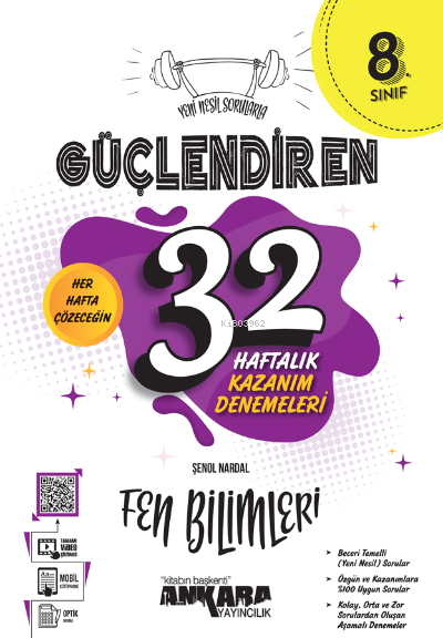Sevgili arkadaşlar, Her hafta işlenen kazanımları kendi içinde değerlendiren ve 32 denemeden oluşan bu ürün, kazanımları içeren konuları pekiştirmenizi sağlar. Her denemenin giriş kısmında bulunan kazanımlar denemenin içeriğini, deneme tamamlandıktan sonra yapacağınız optik okuma ise hangi kazanımlardan eksiğiniz olduğunu gösterir. 32 Haftalık Güçlendiren Kazanım Denemeleri öğrendiklerinizi pekiştirmenin yanı sıra eleştirel ve analitik düşünmenize; tablo, grafik ve görsel yorumlamanıza; mantık ve muhakeme becerilerinizin gelişmesine ve soru çözme stratejisi geliştirmenize yardımcı olur. Amacımız başarıya giden yolda aşama aşama ne düzeyde olduğunuzu görebilmenizi sağlamaktır. Her deneme kendi içinde kolaydan zora doğru sıralanmış sorulardan oluşmaktadır. Özgün ve kazanımlara %100 uygun 32 haftalık denemeler, LGS yolunda yararlanacağınız hem konuyu kavramada hem de deneme çözme alışkanlığı kazanmanız noktasında baş ucu kitabınız olacaktır.