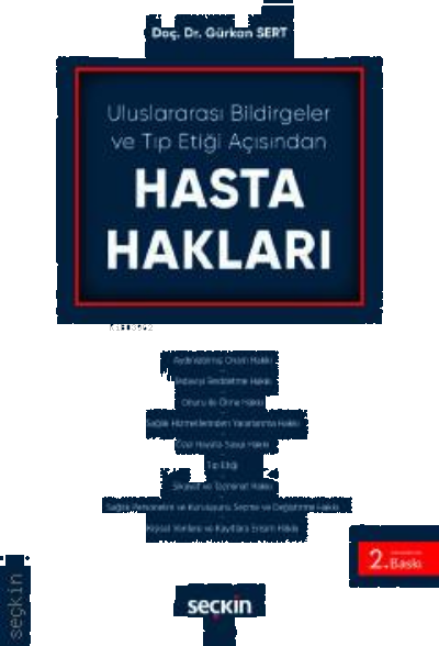 Bu kitapta, hasta haklarının gelişimi ve gelişim nedenleri ile ilgili bilgilerin yanında gelişimde önemli etkiye sahip olan uluslararası hasta hakları belgeleri ve içeriklerine yer verilmiştir. Hasta haklarının Türkiye'deki gelişimi de incelenmiş, mevzuatta yer verilen hasta hakları sayılmış ve bu haklar ile ilgili bilgi sunulmuştur.