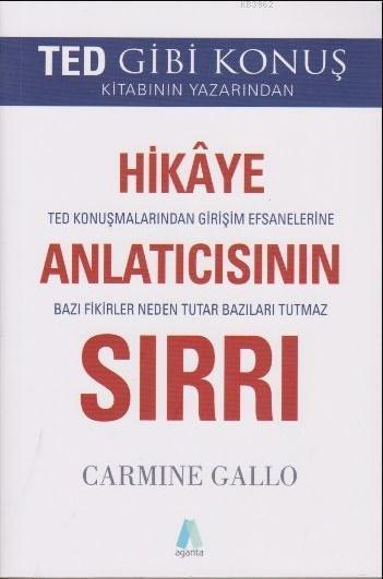 Türkiye'de de çok satan TED Gibi Konuş kitabının yazarı Carmine Gallo, Hikâye Anlatıcısının Sırrı'ndadünyada değişim yaratan girişimciler, şirketler, liderler ve TED konuşmacılarının hikâye anlatma becerilerinin sırlarını ayrıntılı örneklerle gözler önüne seriyor. Richard Branson, Steve Jobs, Sheryl Sandberg, Sara Blakely'den Southvvest, Virgin, Apple, VVhole Foods gibi şirketlere, iz bırakmış pek çok lider ve girişimin başarısına tanıklık ederken kendi hikâyenizin farkına varacaksınız.