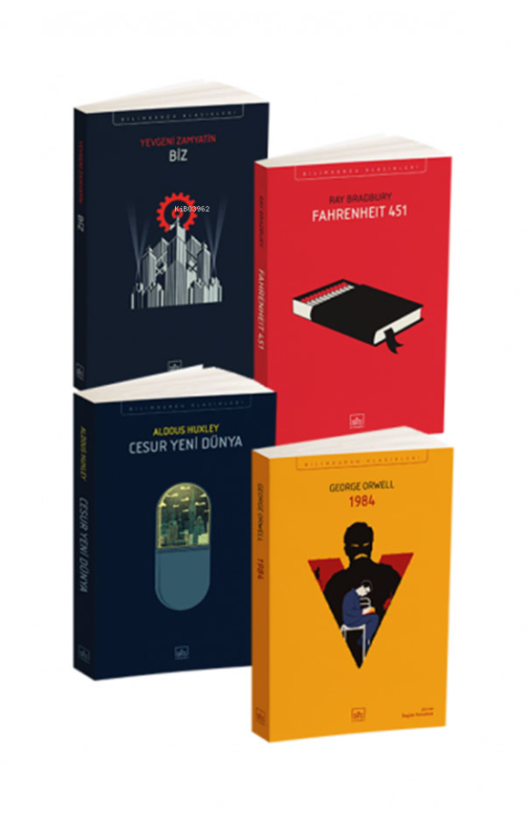 Distopya edebiyatının en önemli klasikleri bu setle bir araya geliyor. Zamyatin'in Tek Devlet'çi Biz'i, Huxley'nin mutluluğu zorunlu tutan Cesur Yeni Dünya'sı, Orwell'in totaliter 1984'ü ve Bradbury'nin kitap yakılan anlatısı Fahrenheit 451'i bu yeni setle birlikte distopyanın kare asını tamamlıyor.