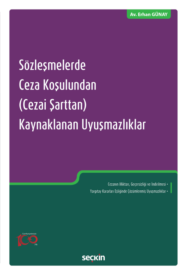 Kitapta; ceza koşulunun tanımı, niteliği, türleri, alacaklının hakları, cezanın miktarı, geçersizliği, indirilmesi konuları ile Yargıtay kararları eşliğinde çözümlenmiş uyuşmazlıklara yer verilmiş, özellikle en son tarihli HGK, Özel Daire ve BAM kararları ayrıntılı şekilde ilgili maddelerin altına, tarih sırasına göre eklenmiştir.