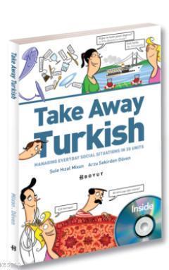 Boyut Yayıncılık'tan çıkan Take Away Turkish, Türkiye'de çalışan ve yaşayan yabancılar ile turistler için Türkçe öğrenmenin en kolay ve eğlenceli yolu. Toplam 35 ünitede Türkçe bilmeyenlerin günlük yaşamda anlamaları ve kullanmaları gereken tüm ifadeleri keyifli bir anlatım ve alıştırmalarla sunan kaynak, okuyucuların Türkiye'deki günlük dil ve kültür hakkında detaylı bilgi sahibi olmalarını da sağlıyor. Kitapta Türkiye'ye gelen turistler ve burada yaşayan yabancıların sıklıkla karşılaştığı gerçek durumlardan yola çıkarak oluşturulan örnekler kullanılıyor.