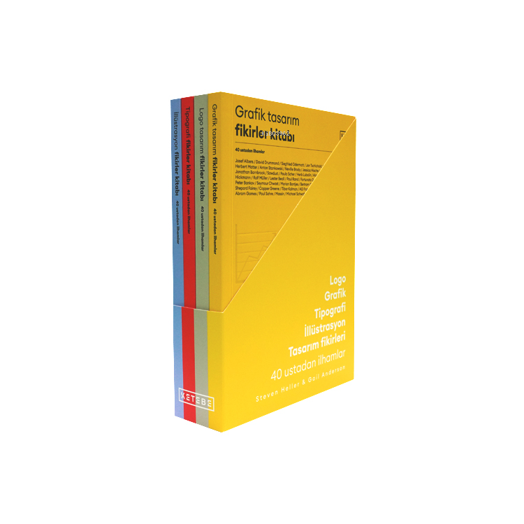Tasarım Fikirler Kitapları, logo, grafik, tipografi ve illüstrasyon tasarımı adına 40'ar ustadan il-hamlar sunan dört kitaptan oluşuyor. Tasarımcı, sanatçı, editör ya da yazar... sanat ve tasarımla ilgilenen pek çok insana hitap eden bu kitaplar, halka mal olmuş tasarımlardan ve tasarımcılardan eşsiz örnekler sunuyor. Birbirlerini destekler nitelikte geniş bir içerik sunan Tasarım Fikirler Kitapları, hem kütüphaneleri-mizin raflarını süsleyen nadide parçalar, hem her an başvuracağımız başucu kitaplarımız olacak.