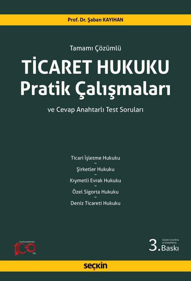Ticaret hukukunun öğretimine yönelik ticari işletme hukuku, şirketler hukuku, kıymetli evrak hukuku, sigorta hukuku ve deniz ticareti hukuku alanlarında hazırlanan kitapta, hem tümü çözümlü olaylara hem de cevap anahtarlı test formatındaki sorulara yer verilmiştir.