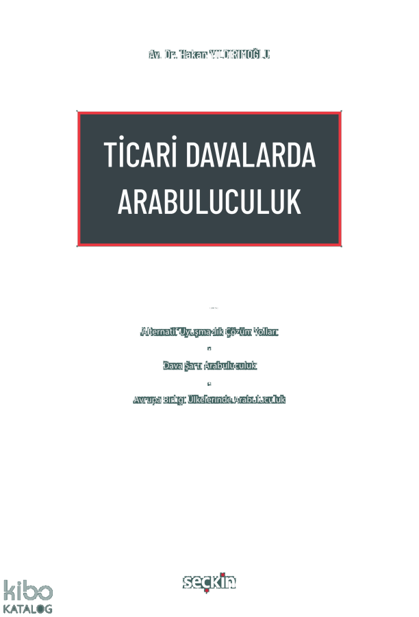 Kitapta ; alternatif uyuşmazlık çözüm yollarının mahkemelere göre avantajları ortaya konmuş, akabinde alternatif çözüm yollarının birbirlerine avantajları irdelenmiş, ticari uyuşmazlıkların çözümlenmesine yönelik uygulanan yöntemler incelenmiş, AB'ye üye ülkelerin bazıları ile hem ticari hayatın hem de arabuluculuk sisteminin gelişmiş olduğu diğer ülkelerin arabuluculuk yöntemleri karşılaştırılmış, Türkiye'de yürürlüğe giren uygulamalarla bunların mukayesesi yapılmış, ticari davalarda arabuluculuk konusu hakkında uygulamaya yönelik bilgiler ve yargı kararlarından örnekler verilmiştir.