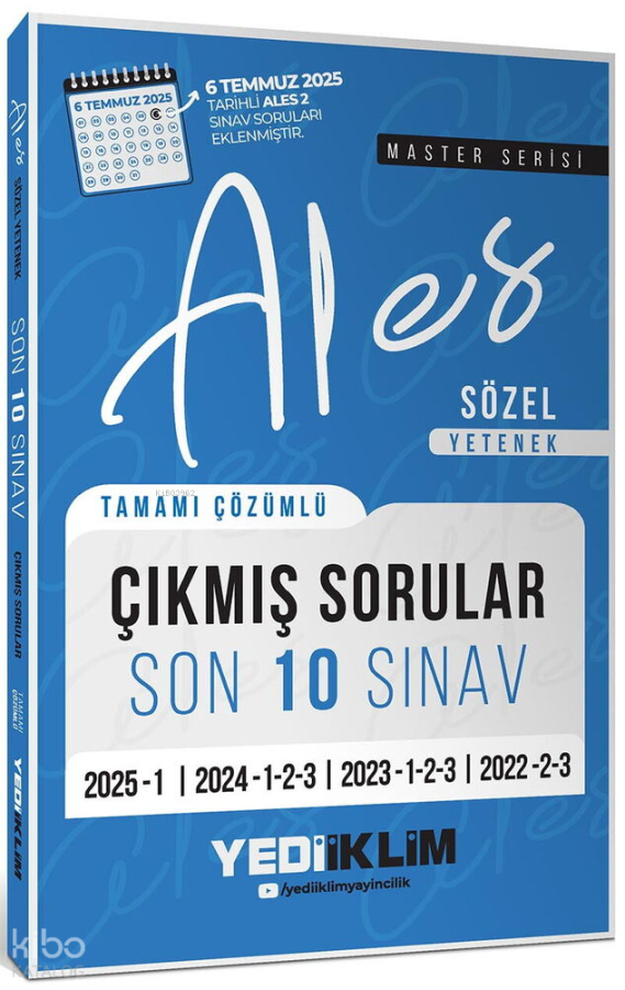 Yediiklim Yayınları ALES Master Serisi Sözel Yetenek Tamamı Çözümlü Son 10 Sınav Çıkmış Sorular 6 Temmuz 2025 Ales-2 Ekli)