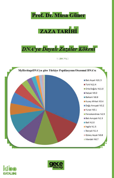DNA testleri, Zaza aşiretlerini birbirine bağlayan akrabalığı büyüleyici bir netlikle ortaya koymaktadır. Sonuçlarımda 11.500'den fazla potan-siyel DNA akrabası ortaya çıktı. DNA testleri hepimizin ne kadar yakın olduğumuzun bir hesabını göstermektedir. Akrabalarımı beli1rlemek adına DNA profilim dünyanın dört bir yanından yaklaşık 3.500 Zaza bireyiyle karşılaştırıldı. Derleme tablosu, farklı DNA test şirketleri için Zaza adaylarının tahmini etnisite dağılımının ortalama değerlerini sunmaktadır. Etkili izolasyon Zaza halkının DNA'sının kendine özgü olarak kalmasını sağlamıştır. Bu durum, Zazaların çekirdek ülkedeki “Zazadiyar” toplumunun ayrıcalıklı yapısı ve iç evliliklerinin Zazaların DNA'sını farklı bir tür haline getirdiğini göstermektedir. DNA, diller, göçler, dinî ortamlar, yaşam alışkanlıkları, tarımlar ve kültürel faaliyet-ler kadim Zaza halkının bilgisine katkıda bulunan bulmacanın parçala-rıdır. Bunun etrafındaki akıl yürütme, kadim atalarımızı keşfetmenin yaratıcı bir yoludur.